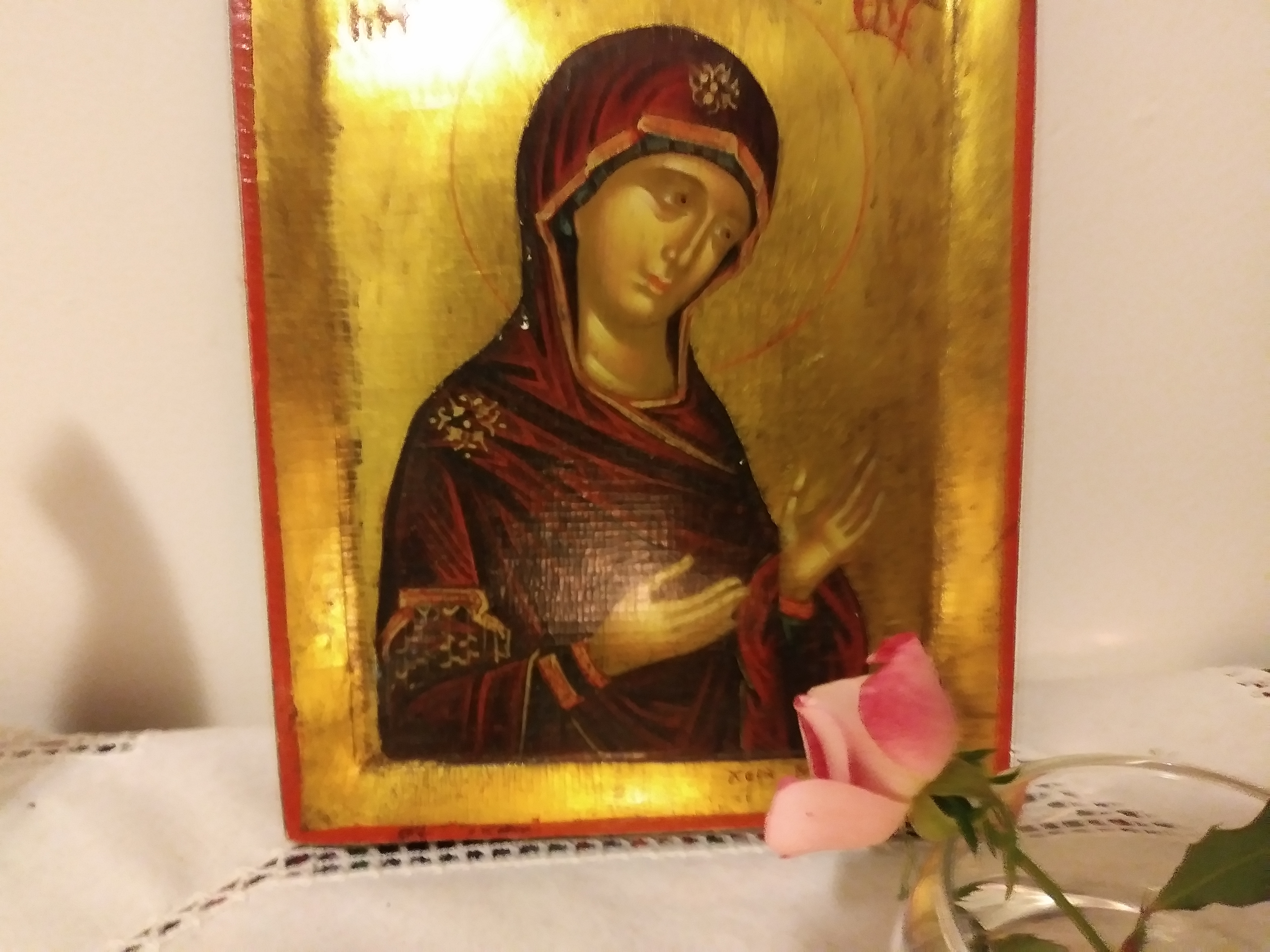 Though I am no theologian, I have a consuming interest in the many aspects of this mystery. What I glimpse is this: the human heart longs for a divine mothering presence. Ancient cultures honoured a feminine divine who over millennia was called by many names: Isis in Egypt; Inanna in Sumeria; Ishtar in Babylon; Athena, Hera and Demeter in Greece, Anu or Danu among the ancient Celts; Durga, Kali and Lakshmi in India; for the Kabbalists, Shekinah; for the gnostics, Sophia or Divine Wisdom. Christianity had no “Mother God” to put in the place of the Goddesses whose worship it was determined to eradicate. Geoffrey Ashe’s theory is that Mary’s gradual ascension in Christianity was not an initiative of Church Leadership, but rather a response to the hunger of the early Christians for a sacred feminine presence.
