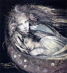 Reeds growing in the nearby river, symbols of the feminine, advise her. Guided by the moon, rather than the all-revealing light of the sun, Psyche is to approach the rams while they sleep. She is to take their fleece not directly from them but rather from the nearby bushes, where tufts of the golden fleece have been snagged as the rams passed by… Psyche completes this task in the feminine way: following the wisdom of moonlight and indirection.
